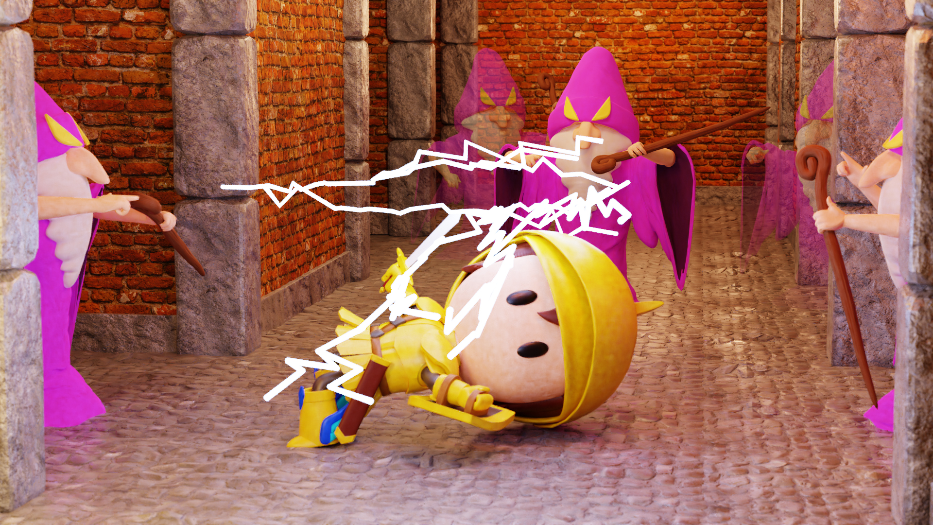 【Floor 06】 DOMB DOMBの場面を作ってみました。 ブ1「見つけたぞ、黄金の騎士め。」 ブ2「俺たち黒い2年生に目をつけられたのが運の尽きだな。」 ブ1「例の技をかけるぞ!思ったより素早いぞ、いいな?」 ブ2「おぉ!」